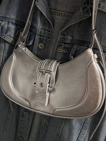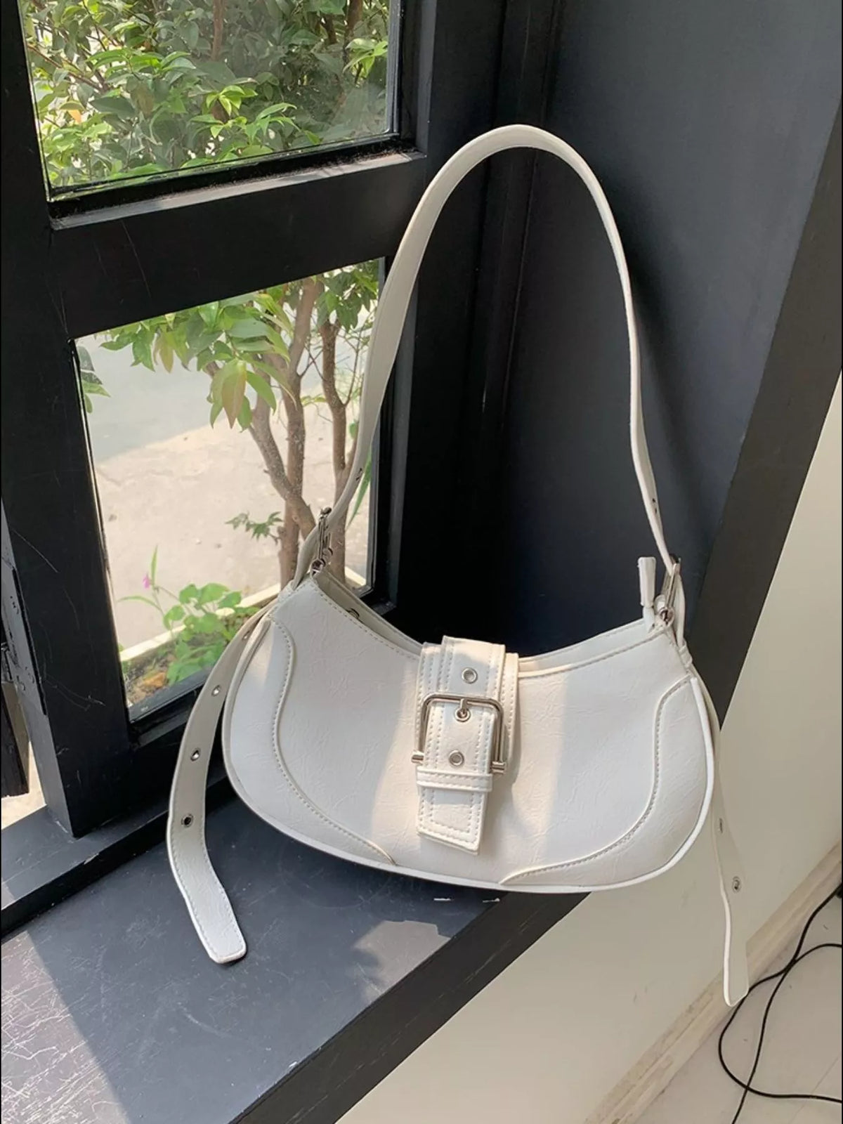 Buckle Adjustable Strap Shoulder Bag - White / onesize