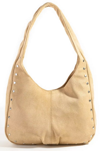 Fame Faux Suede Studded Trim Hobo Bag Sale