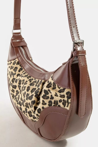 Introducing the Leopard Print Half Moon Shoulder Bag, a trendy and stylish accessory that adds a touch of wild flair to your outfit. This eye-catching bag features a bold leopard print design that is sure to make a statement. The half-moon shape adds a unique and modern touch to the bag's silhouette. With a shoulder strap for easy carrying, this bag combines fashion and functionality effortlessly. Elevate your look with this chic and on-trend shoulder bag that exudes personality and style.