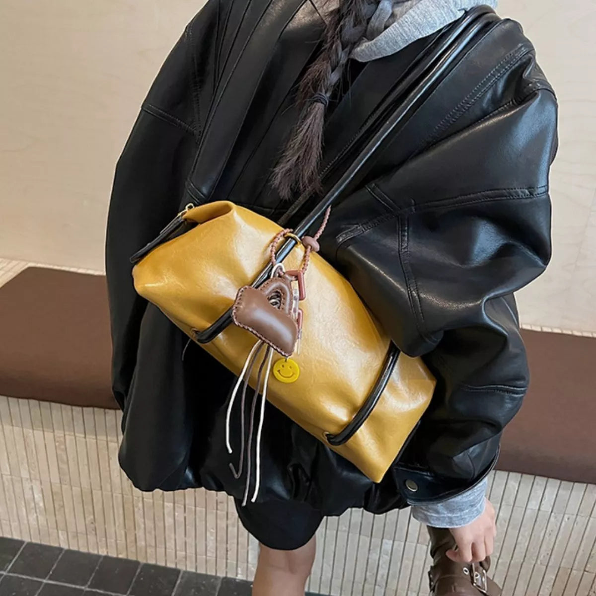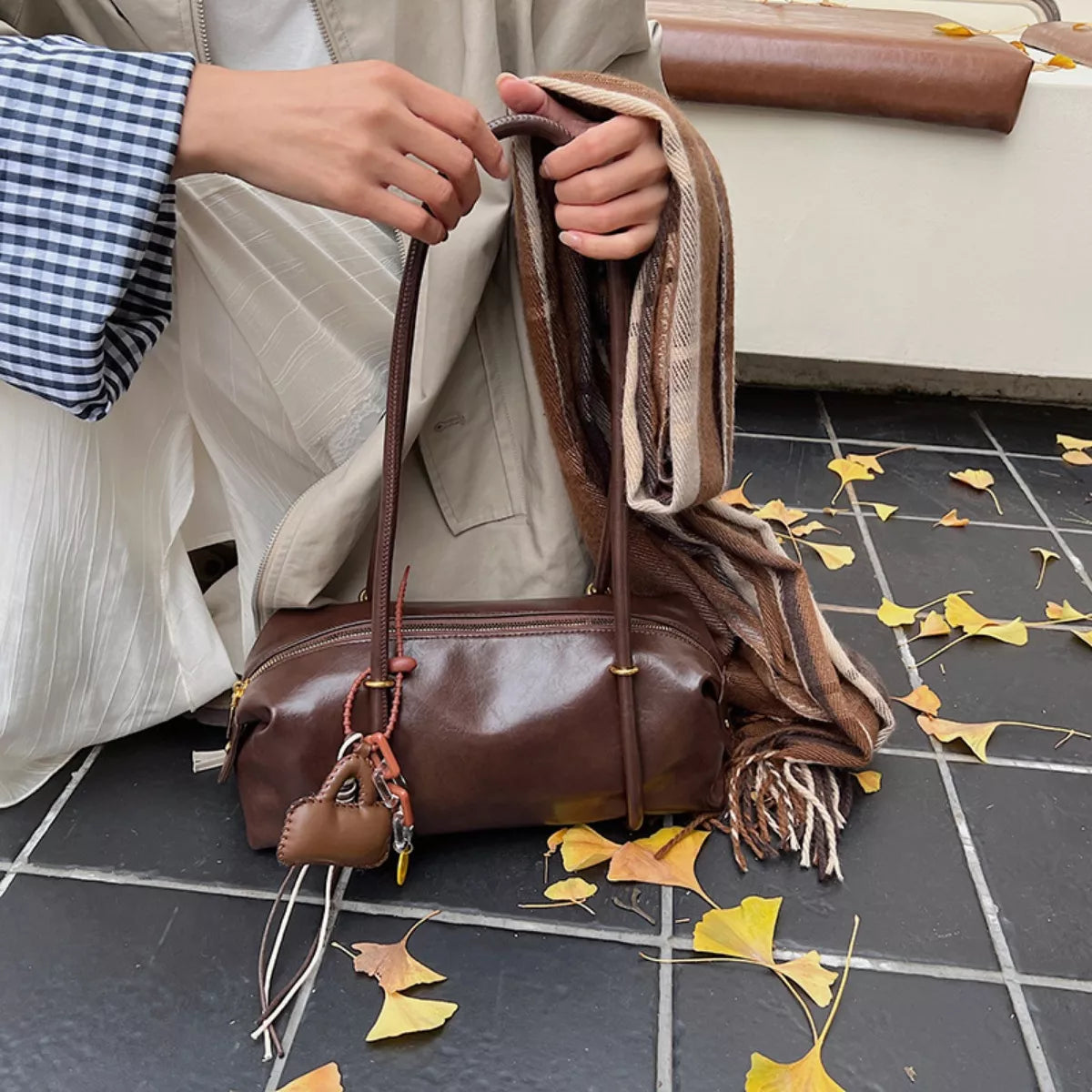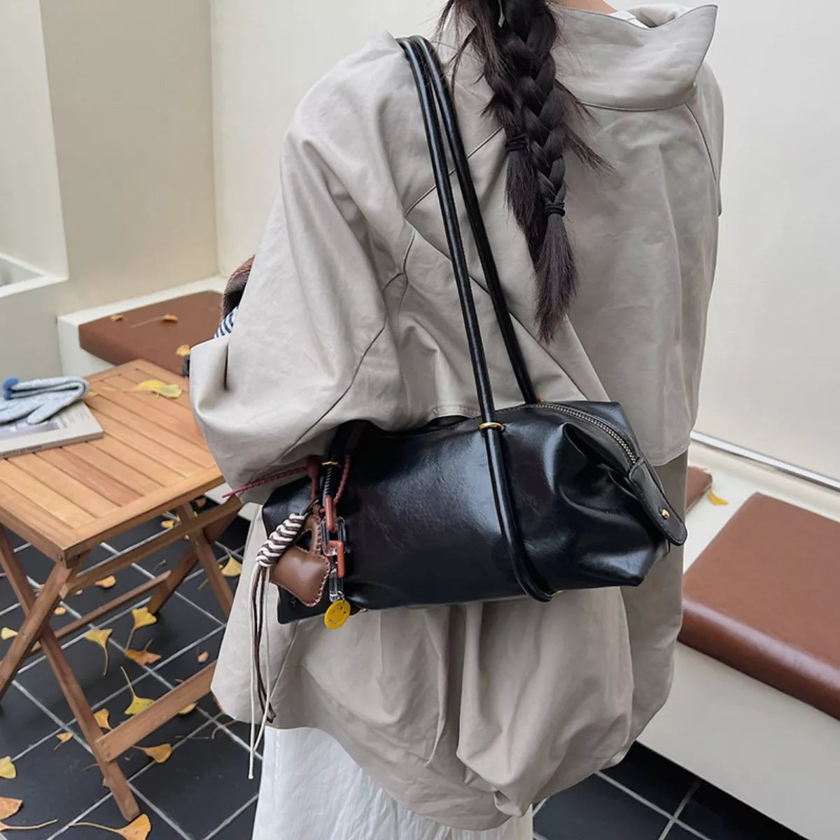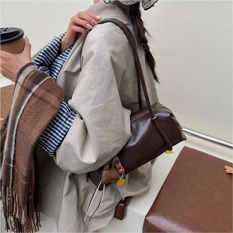 Leather Shoulder Bag with Charm Sale
