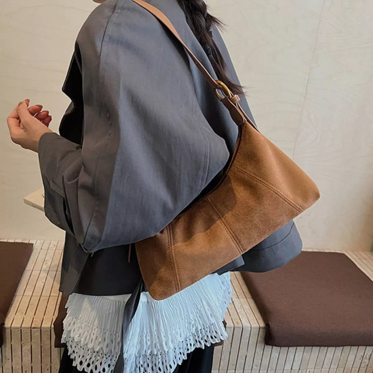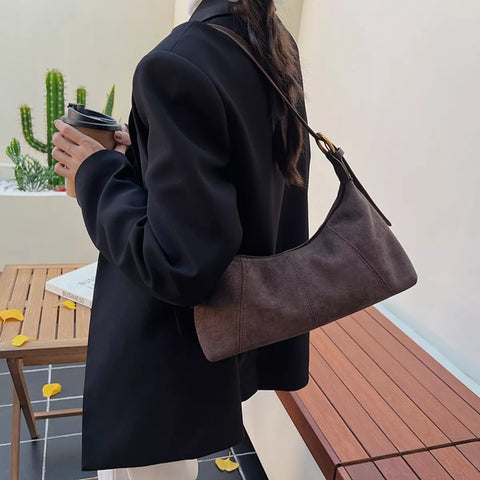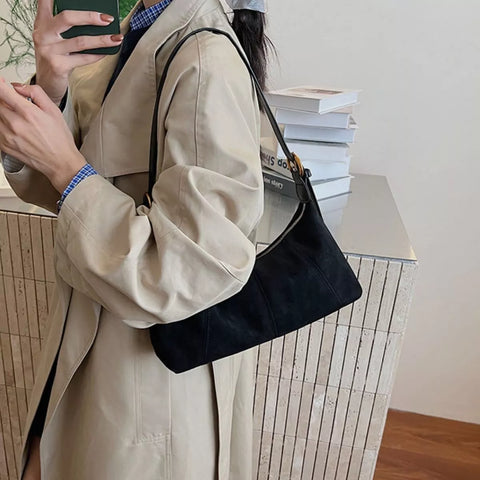 Lightweight Solid Color Shoulder Bag - Black / One Size
