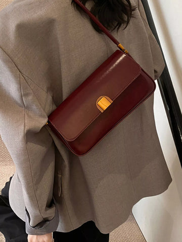 Retro Style Leather Shoulder Bag - Black / One Size