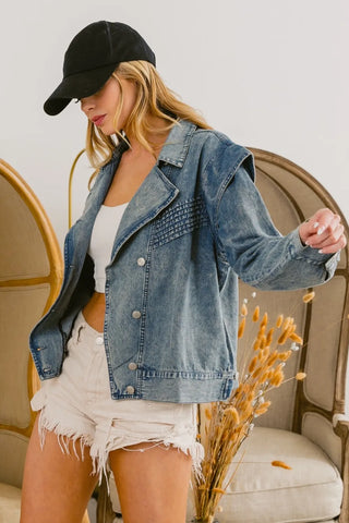 BiBi Button Up Long Sleeve Denim Jacket - DENIM / M