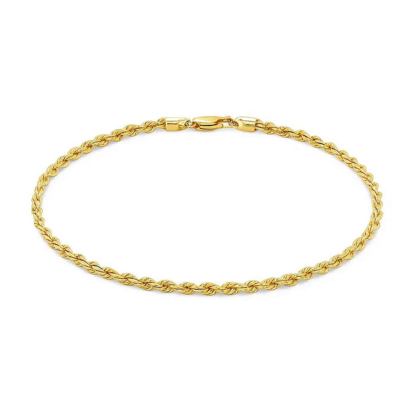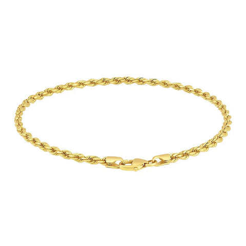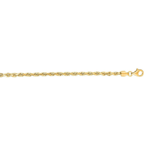 This solid diamond cut rope bracelet comes in 10k yellow gold and has a width of 3.0 millimeters.