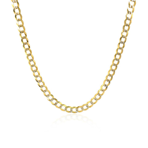 This pave curb chain comes in 14k two tone gold and has a width of 3.20 millimeters.