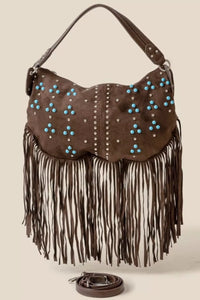 Fame Studded Pattern Multi Fringe Hobo Shoulder Bag - CO / One Size