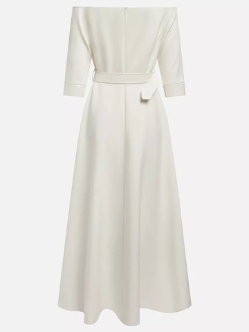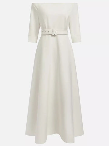 Elegant Off-Shoulder Belted Maxi Dress - Off-white / S