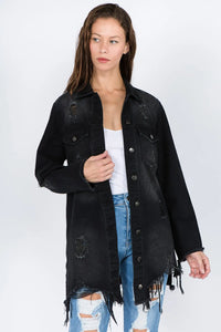Distressed frayed hem denim jackets are a trendy choice for adding a touch of edginess to your outfit. The distressed details and frayed hems give off a relaxed and effortlessly cool vibe. This style of jacket is versatile and can be worn with a variety of outfits, from casual to more dressed up looks. The distressed finish adds a worn-in, vintage feel to the jacket, perfect for those who love a bit of retro flair. Pair it with your favorite jeans and a graphic tee for a laid-back, stylish ensemble. Stay on-trend with a distressed frayed hem denim jacket this season!