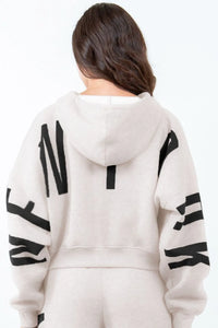American Bazi Letter Graphic Long Sleeve Drawstring Cropped Hoodie Sale