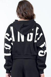 American Bazi Letter Graphic Long Sleeve Drawstring Cropped Hoodie Sale