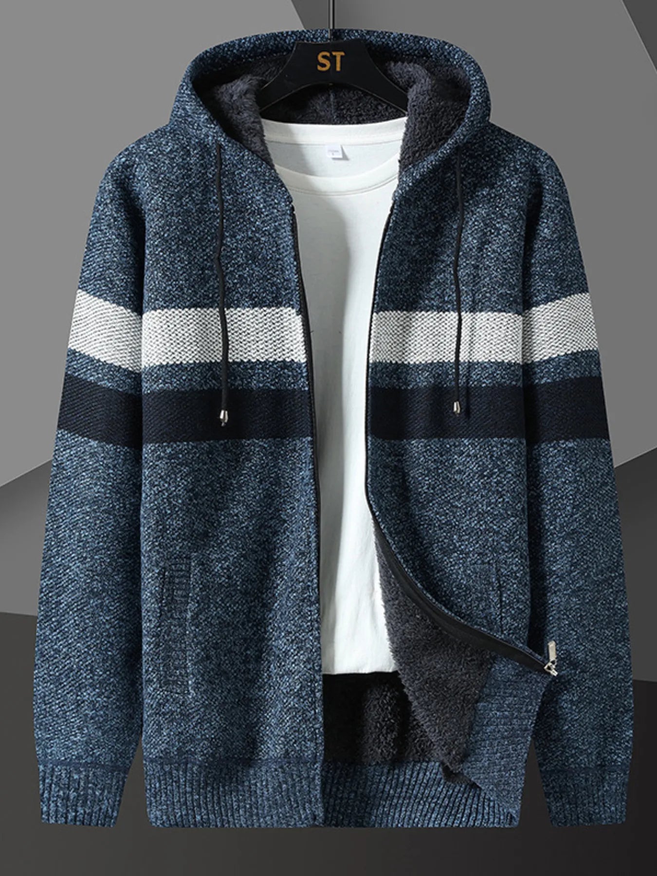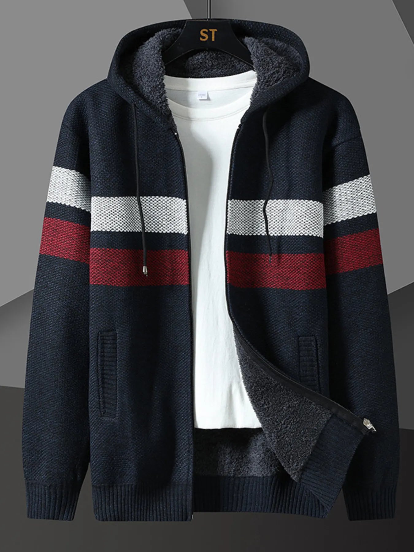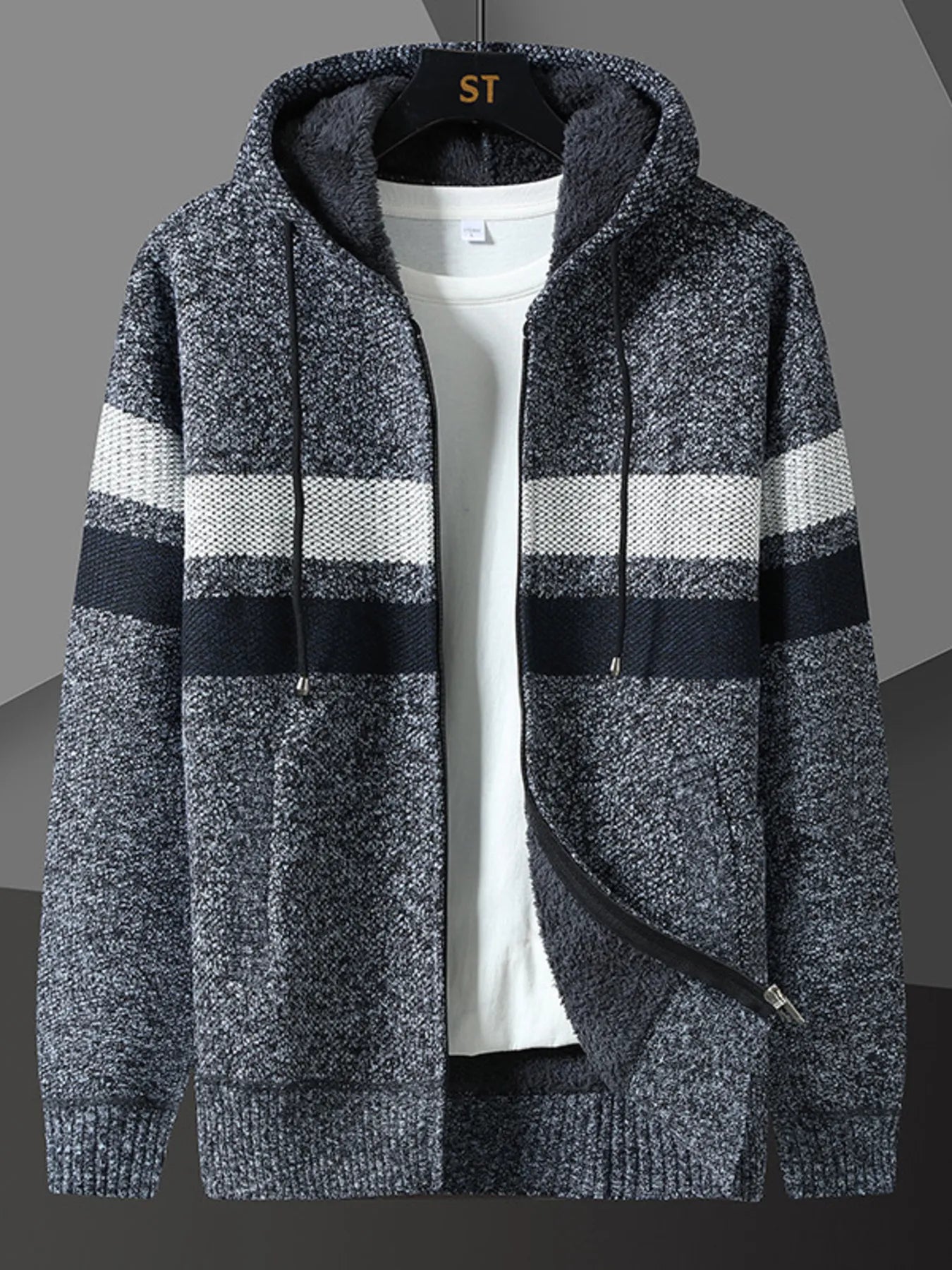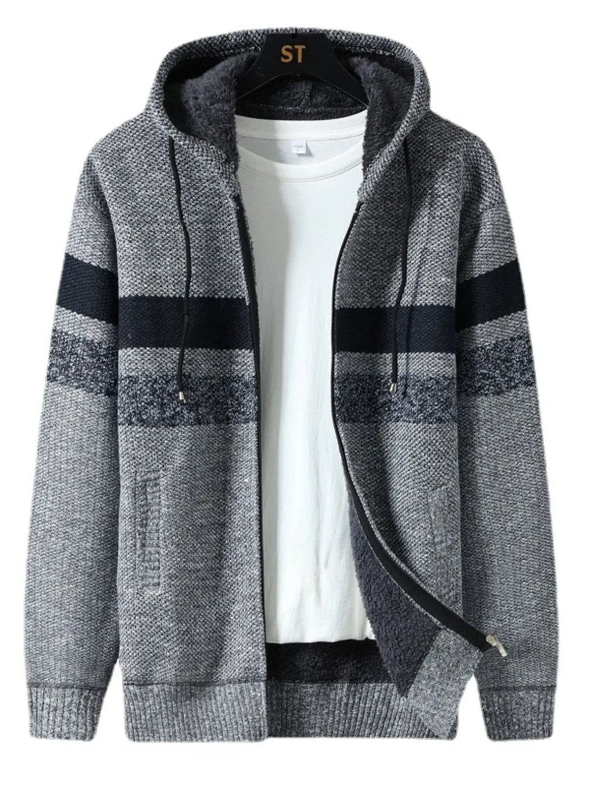 Men's Plus Size Drawstring Zip Up Hooded Cardigan Sale