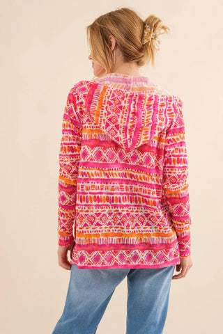 The Printed Thermal Hooded Open Front Cardigan with pockets is the perfect blend of comfort and style for cooler weather. Featuring a cozy thermal fabric, it provides warmth while the hood adds extra protection against the chill. The open front design makes it easy to layer over any outfit, while the eye-catching print adds a stylish touch. Practical pockets offer a convenient place to keep essentials or warm your hands. Ideal for lounging at home or running errands, this cardigan combines functionality with a trendy, casual look. Embrace both comfort and fashion with this versatile addition to your wardrobe.