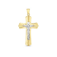 This highly fashionable Two-Tone Diamond Cut Pendant is crafted in 14k yellow & white gold with a high polish finish & hangs from a sleek bail. Perfect for pairing with any basic chain.