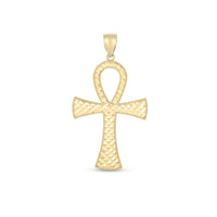 This highly fashionable Textured Ankh Pendant is crafted in 14k yellow gold with a high polish finish & hangs from a sleek bail. Perfect for pairing with any basic chain.