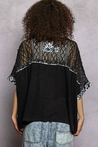 POL Floral Patchwork Lace Accent Blouse - BLACK / S
