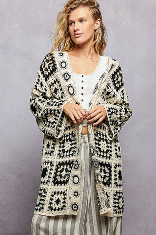 POL Open Front Crochet Cardigan with Granny Square Pattern Sale