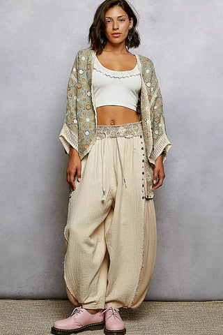 The Dolman Sleeve Crochet Cardigan with Floral Pattern Detail and Border Accents is a stylish and versatile piece that exudes bohemian charm. The dolman sleeves offer a relaxed and roomy fit for comfortable wear. The floral pattern detail adds a touch of femininity and elegance to the cardigan. The border accents provide a polished and finished look to the design. Stay chic and on-trend with this beautifully crafted crochet cardigan, perfect for adding a touch of whimsical flair to your wardrobe.