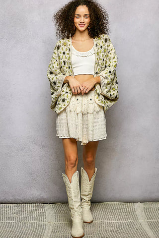 The Dolman Sleeve Crochet Cardigan with Floral Pattern Detail and Border Accents is a stylish and versatile piece that exudes bohemian charm. The dolman sleeves offer a relaxed and roomy fit for comfortable wear. The floral pattern detail adds a touch of femininity and elegance to the cardigan. The border accents provide a polished and finished look to the design. Stay chic and on-trend with this beautifully crafted crochet cardigan, perfect for adding a touch of whimsical flair to your wardrobe.