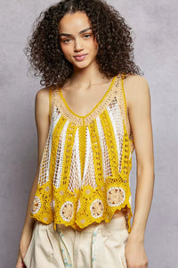 POL Openwork Stripe Pattern Flowy Tank with Scalloped Edge - YELLOW MULTI / One Size