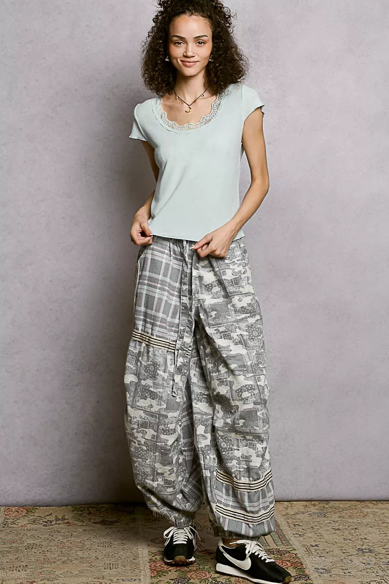 POL Round Neck Short Sleeve Crop T-Shirt with Lace Trim Sale