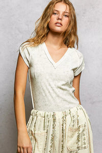This V-neck raglan short sleeve slim fit basic top is a versatile staple for any wardrobe. Made from cotton jersey, it offers comfort and a flattering silhouette. The outseam detailing adds a subtle touch of interest to the design. With vintage washing for a lived-in look, this top exudes a casual and laid-back vibe. The solid color makes it easy to mix and match with various bottoms for effortless styling options. Add this chic and timeless piece to your collection for a classic and stylish outfit choice.