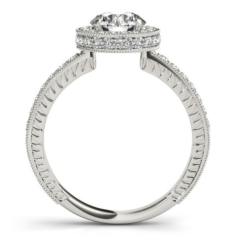 14k White Gold Milgrain Border Diamond Pave Engagement Ring (1 1/2 cttw) Sale