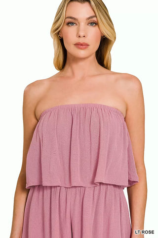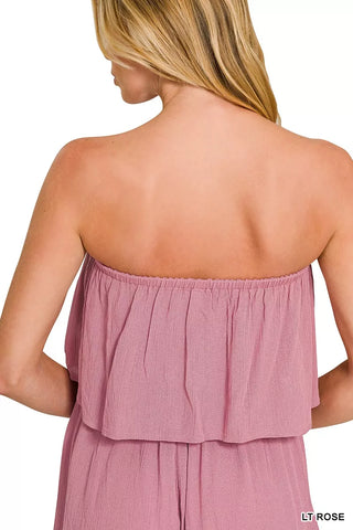 Zenana Woven Crinkle Strapless Rompers - LT ROSE / S