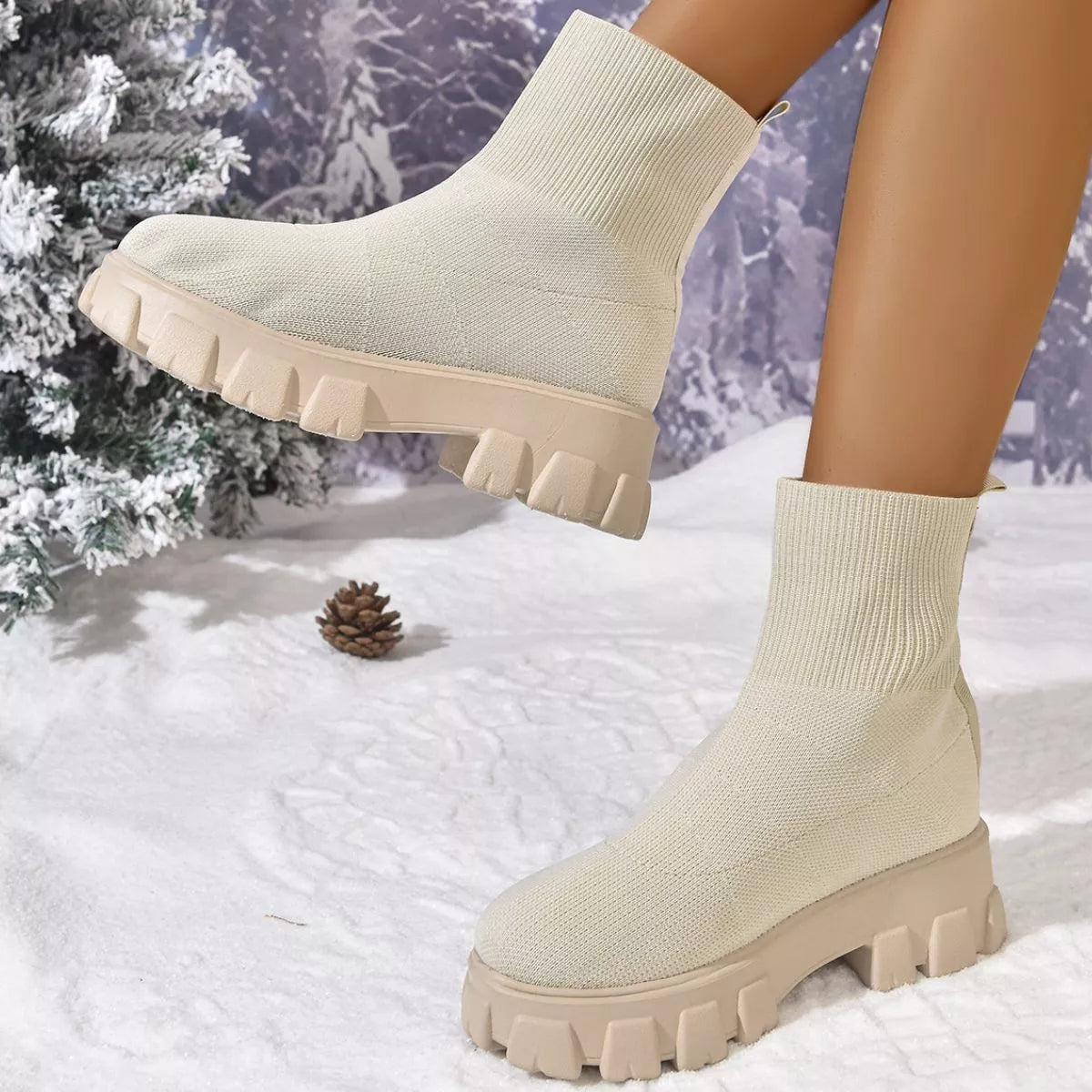 Round Toe Block Heels Boots - White / 35