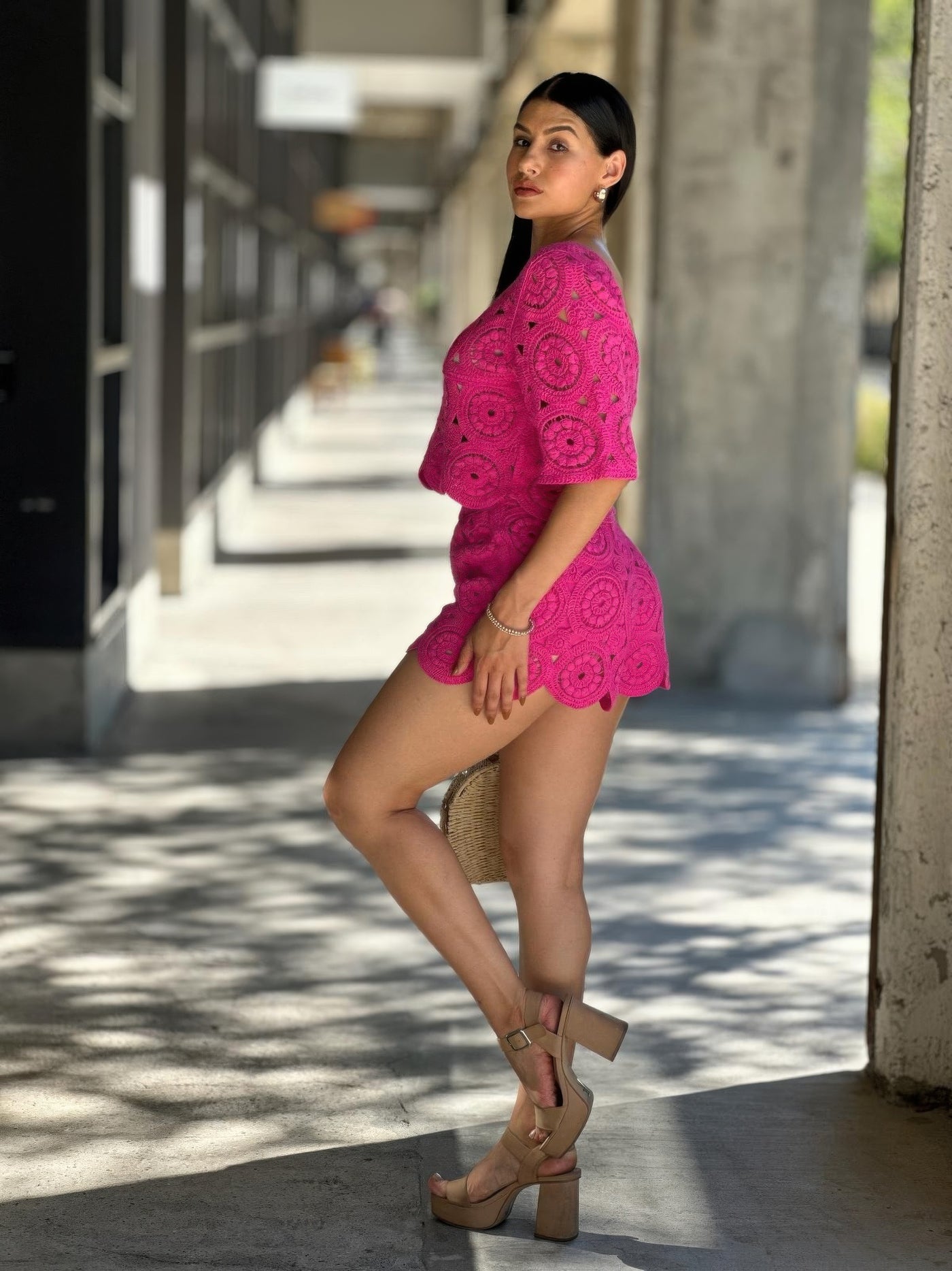 Boho Crochet Lace Crop Top & Line Short Set - S