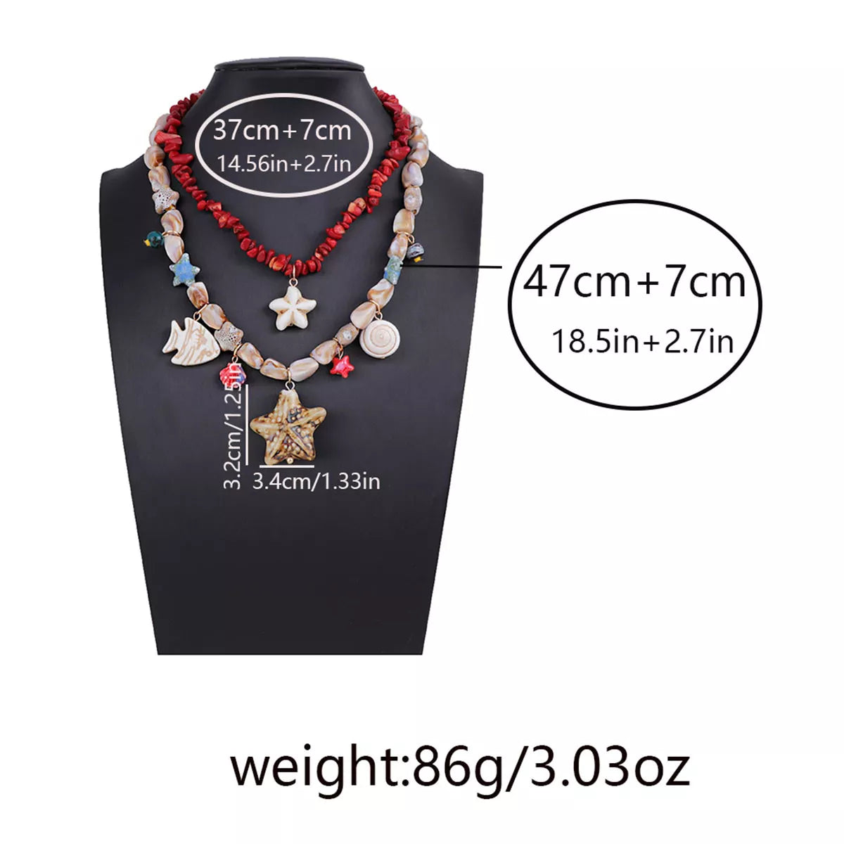 Boho Layered Multi-Strand Beach Shell Charm Necklace - Red / One Size