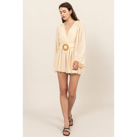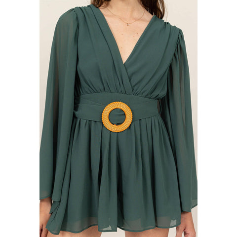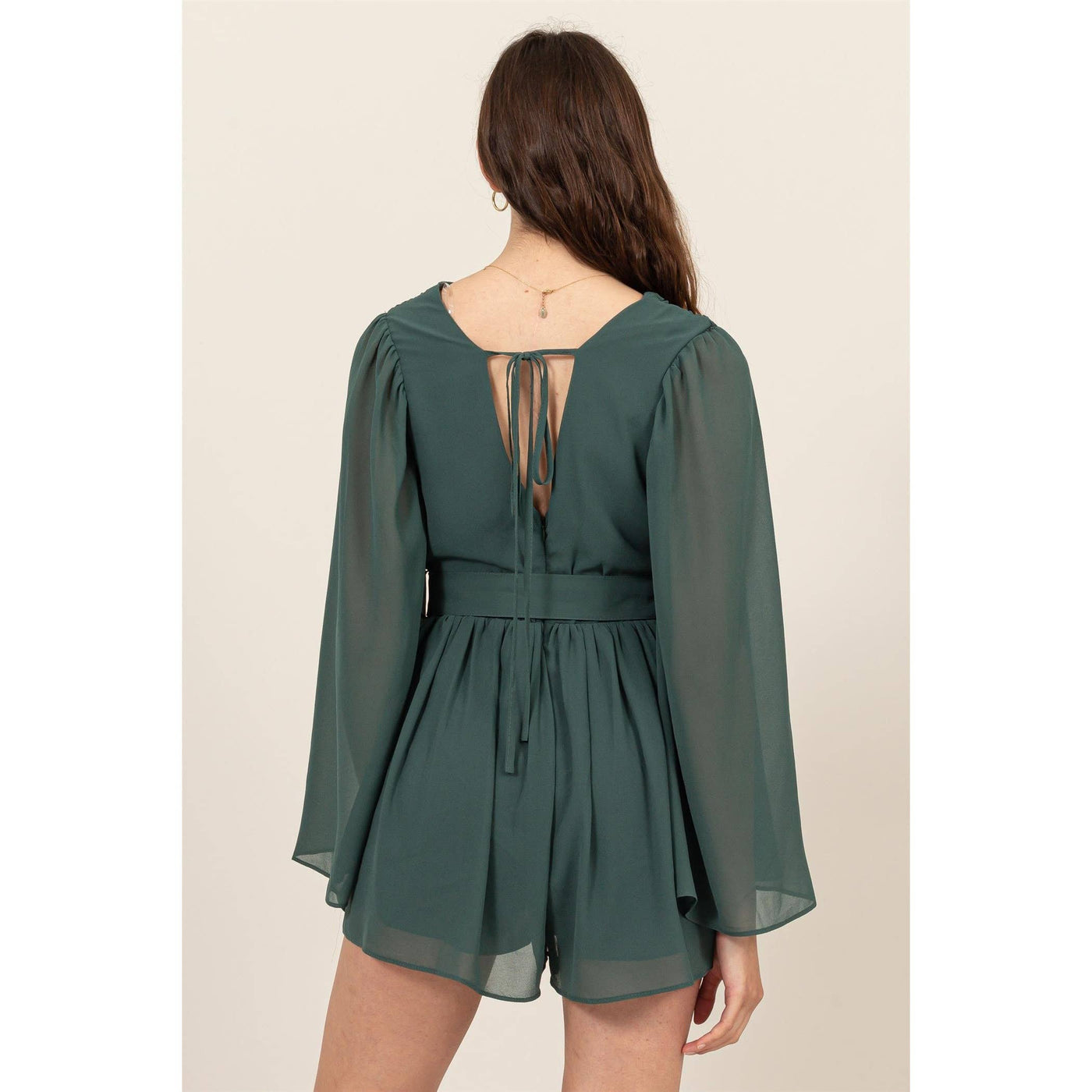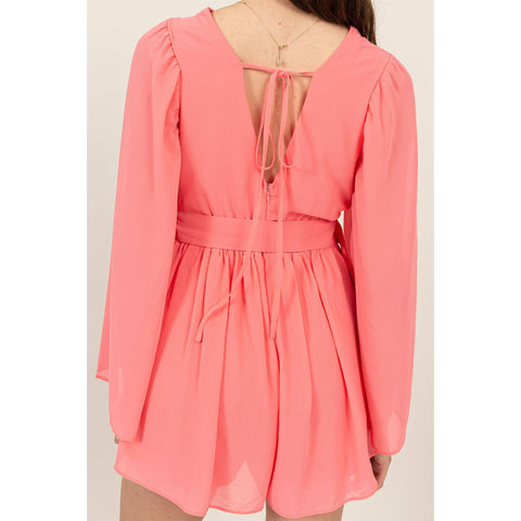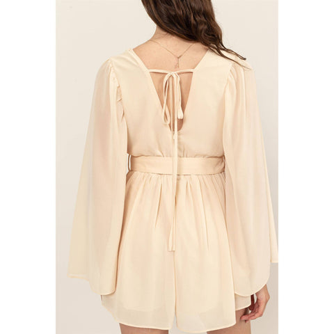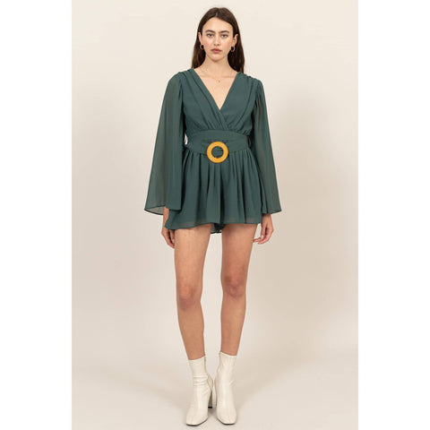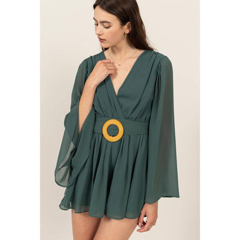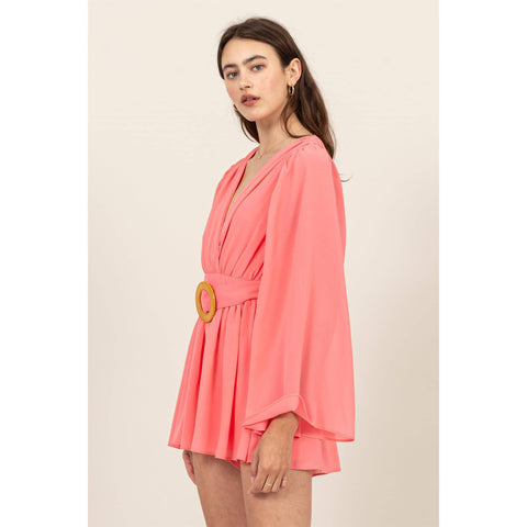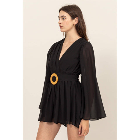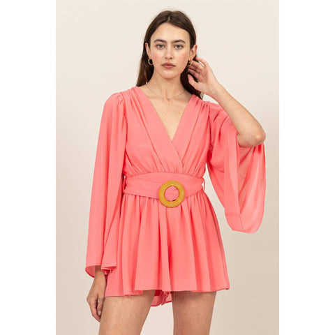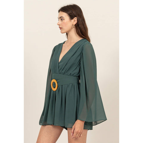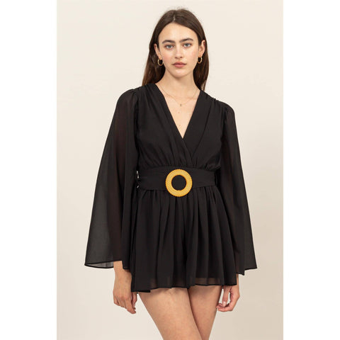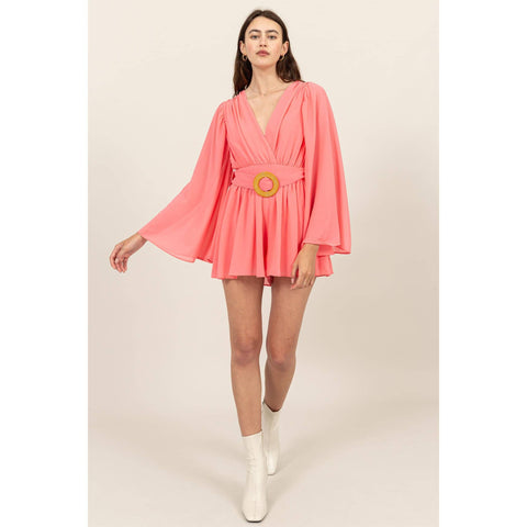 Plunging Neckline Bell Sleeve Romper Sale