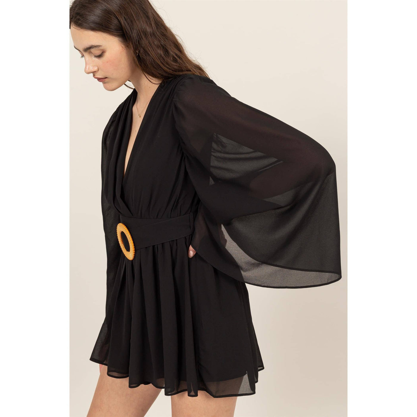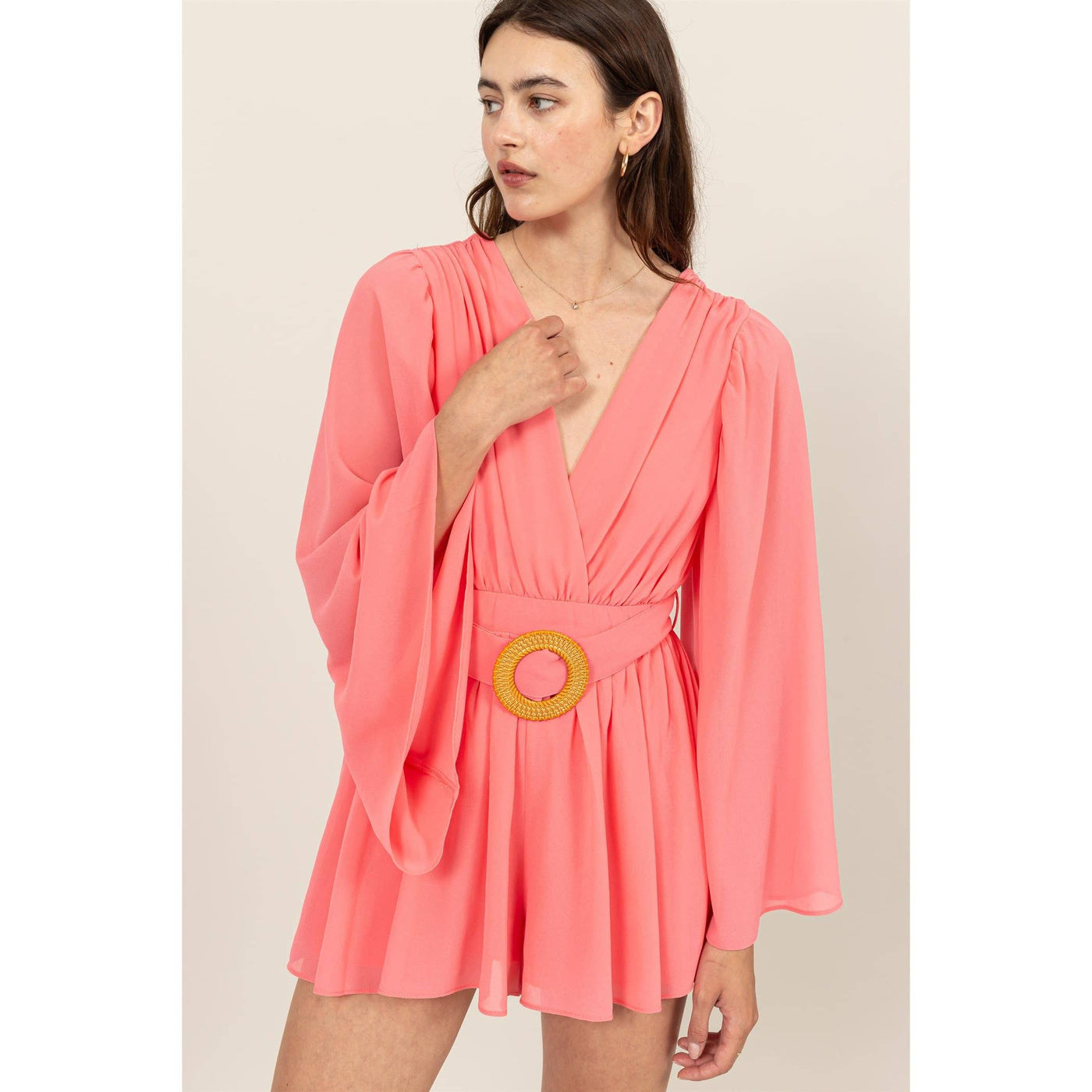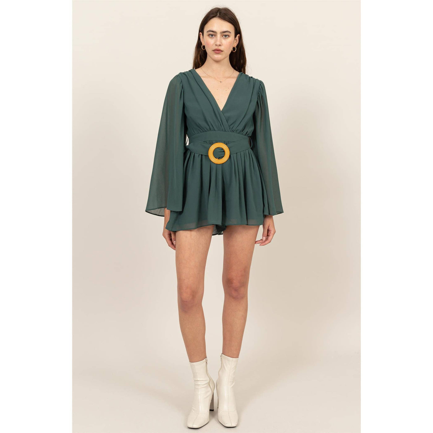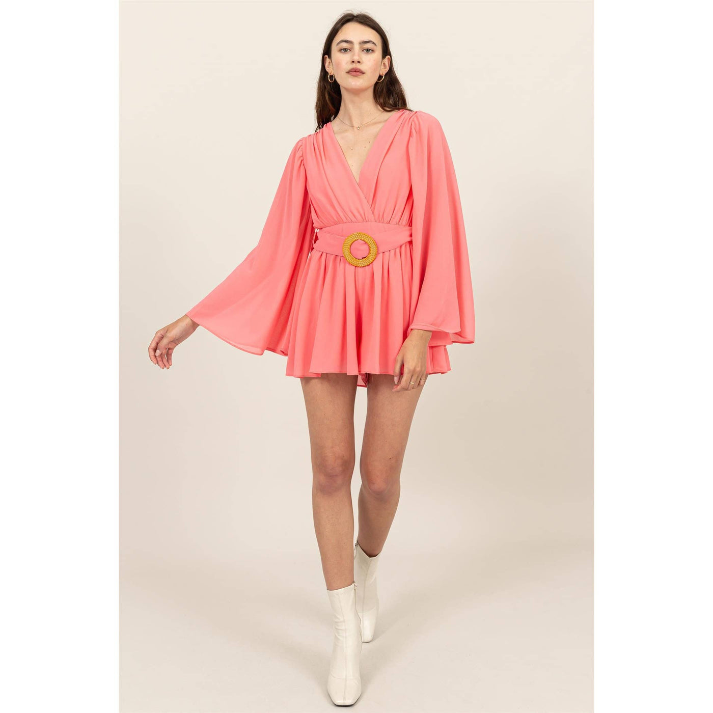 Plunging Neckline Bell Sleeve Romper Sale