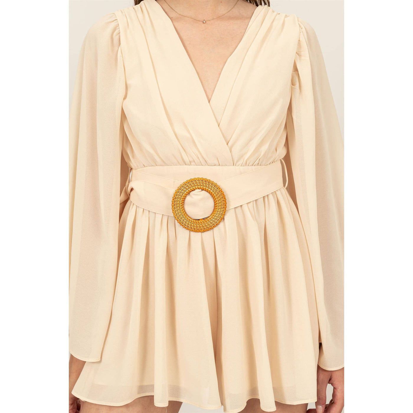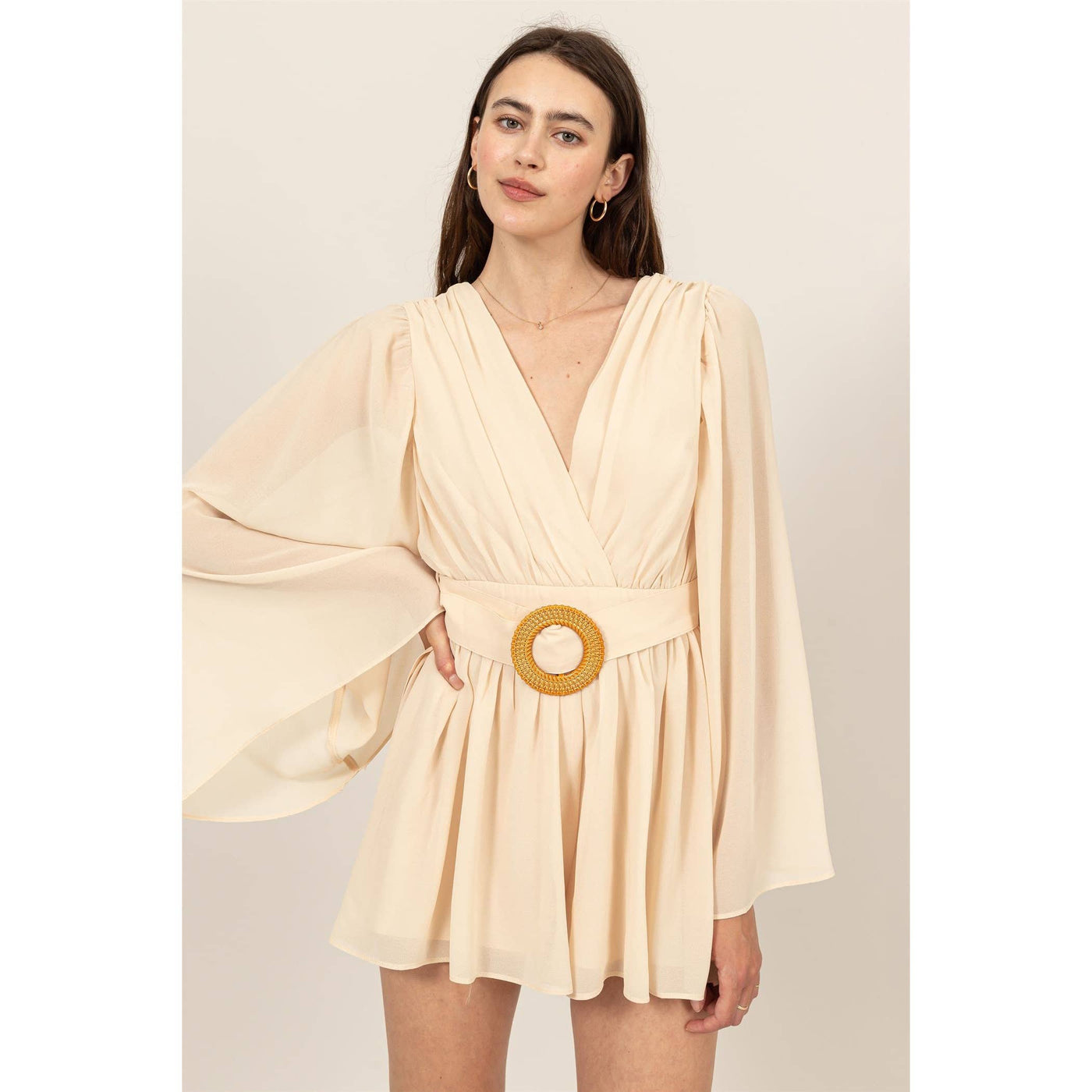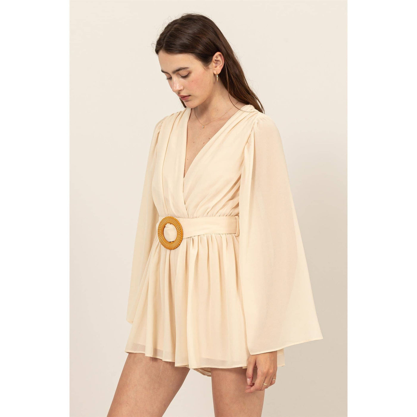 Plunging Neckline Bell Sleeve Romper Sale