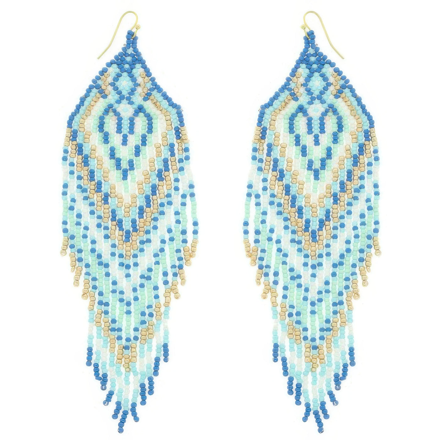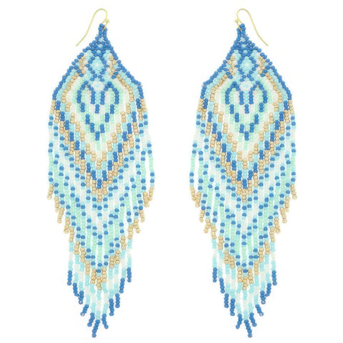 Western Fringe Seed Bead Earrings - Blue