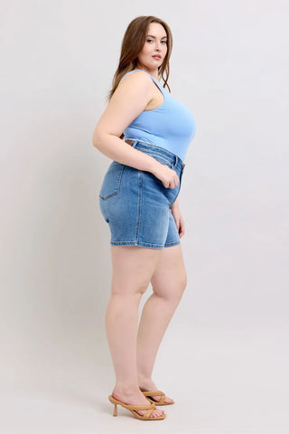 Judy Blue Full Size 2 Button Denim Shorts with Pockets Plus Size Sale