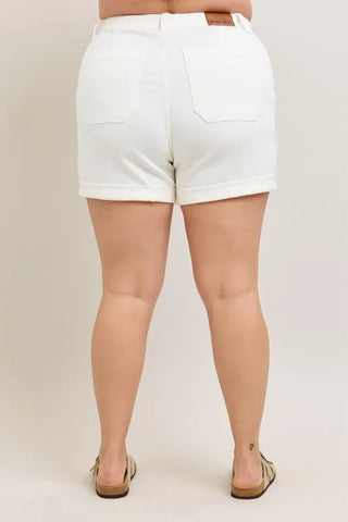 High waist cuff denim shorts are a versatile and classic addition to your summer wardrobe. The high waist design offers a flattering fit that sits comfortably at the natural waist. The cuff detailing adds a stylish and casual touch to the denim shorts, making them perfect for creating effortless and laid-back looks. These shorts can be easily dressed up or down, pairing well with a variety of tops and shoes. Whether you're going for a casual day out or a more put-together look, high waist cuff denim shorts are a staple piece that can be styled in numerous ways to suit your personal style.