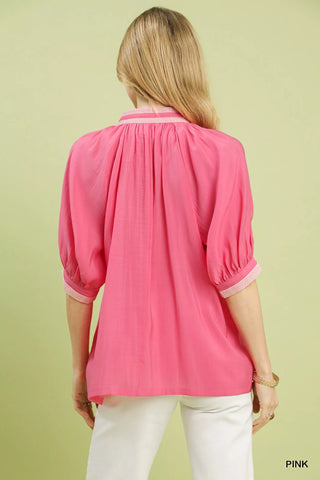 This women's top features a stylish notch neckline, making it perfect for adding a touch of Bohemian flair to your wardrobe. Made from lightweight and breathable fabric, it ensures all-day comfort. The loose fit makes it easy to wear and style, ideal for casual outings or dressing up for special occasions. Unique lace details enhance its visual appeal, making it a standout piece. The short sleeves and versatile design make it a must-have item for any fashion-conscious woman.