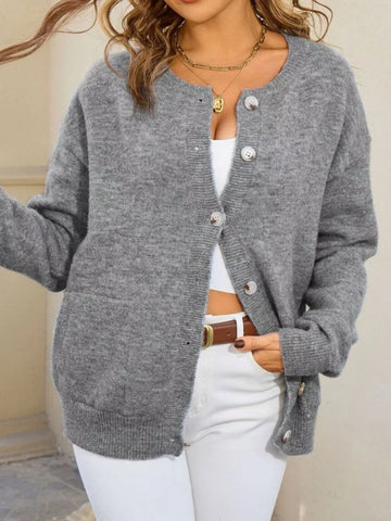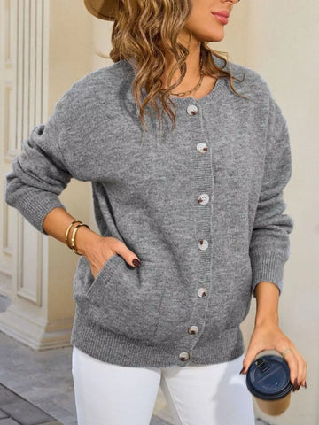 Casual Button-Down Knit Cardigan - Grey / S