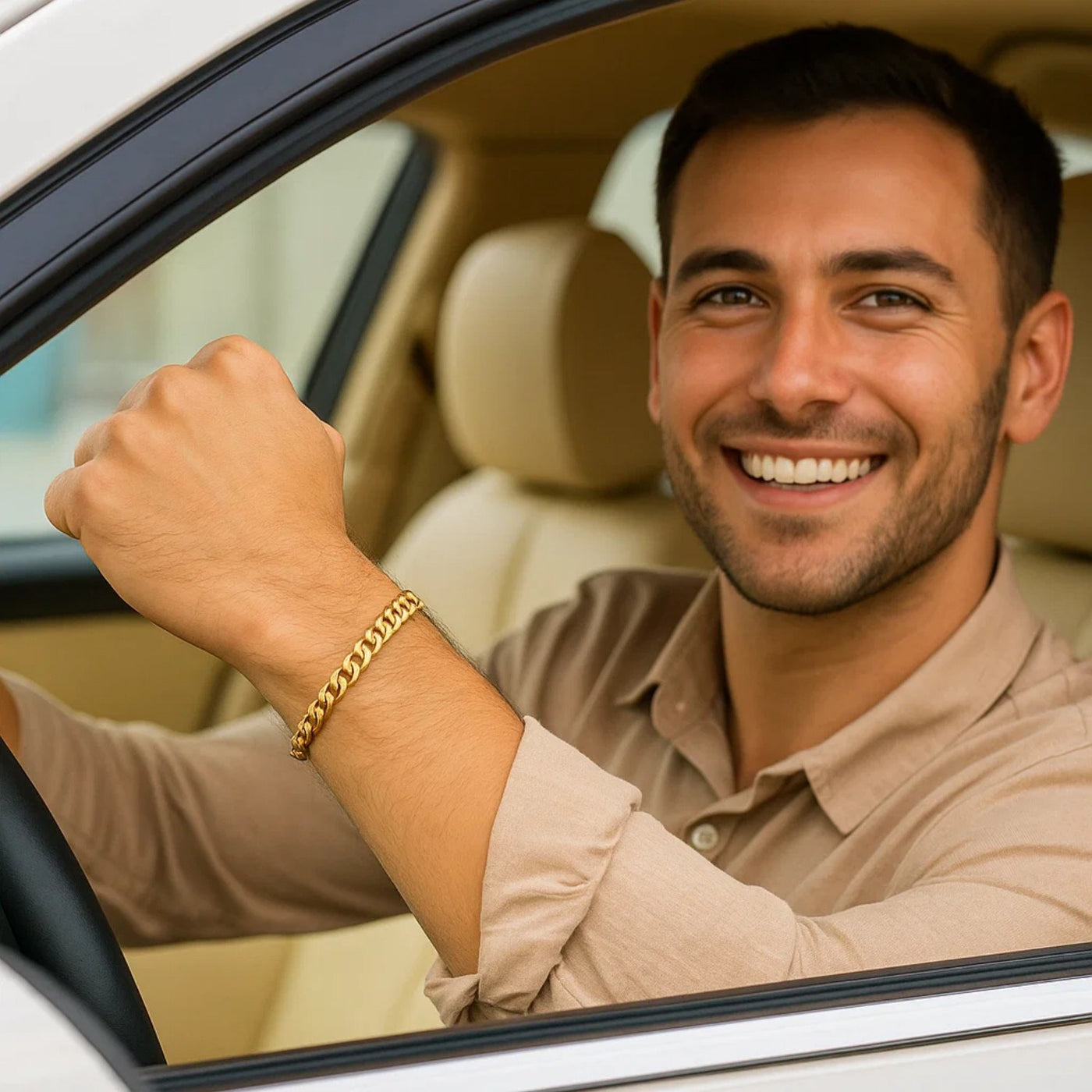 This light Miami Cuban bracelet comes in 10k yellow gold and has a width of 6.7 millimeters. Secured with a lobster clasp.