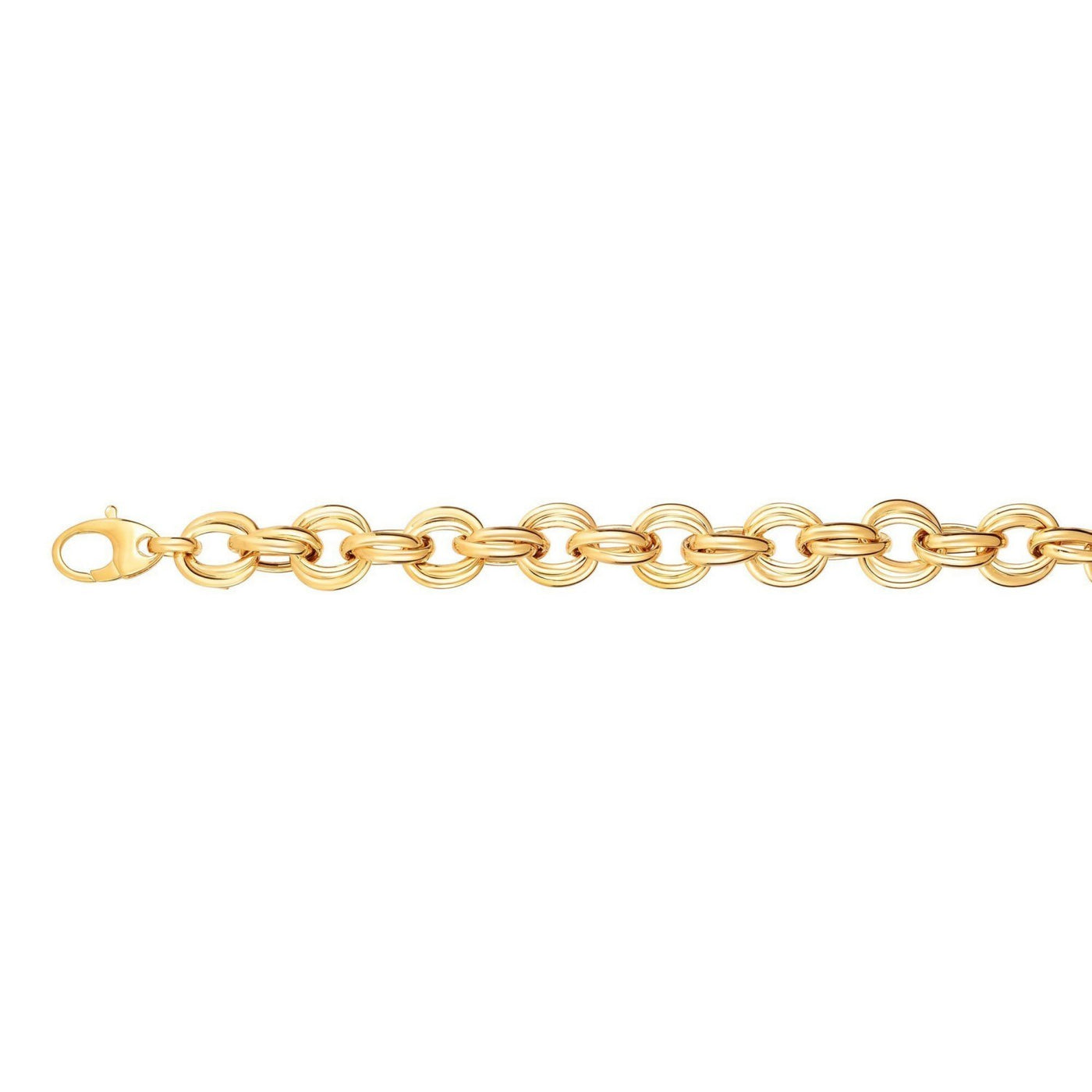 In this update to a classic round link bracelet, pairs of shiny links twisted together. Bracelet is 8 inches long, 11.8 millimeters wide, and closes with a lobster clasp.