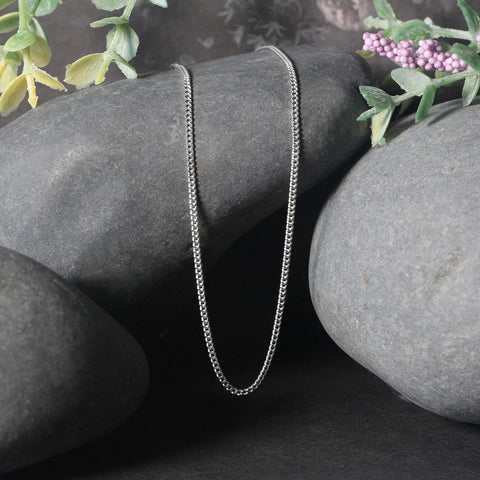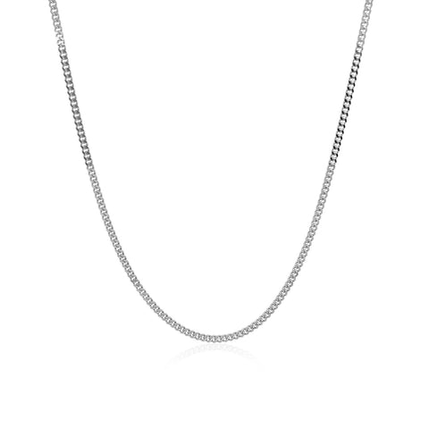 This gourmette chain comes in 14k white gold and has a width of 1.40 millimeters.
