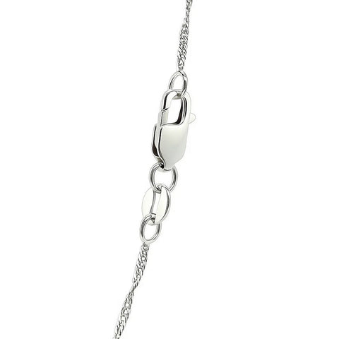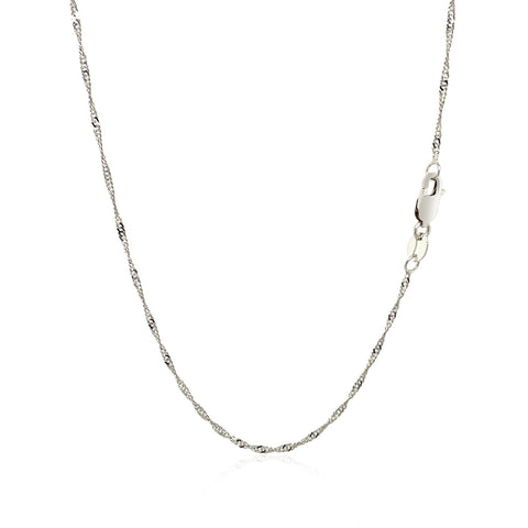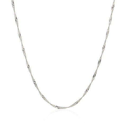 This Singapore chain comes in 14k white gold and has a width of 1.30 millimeters.