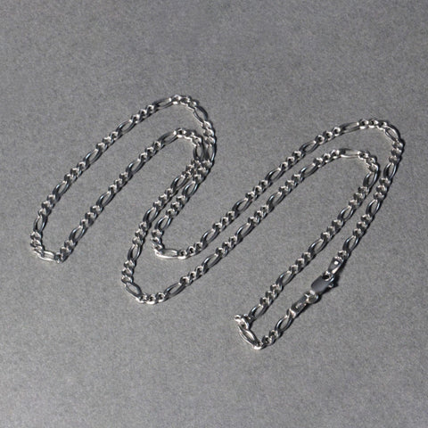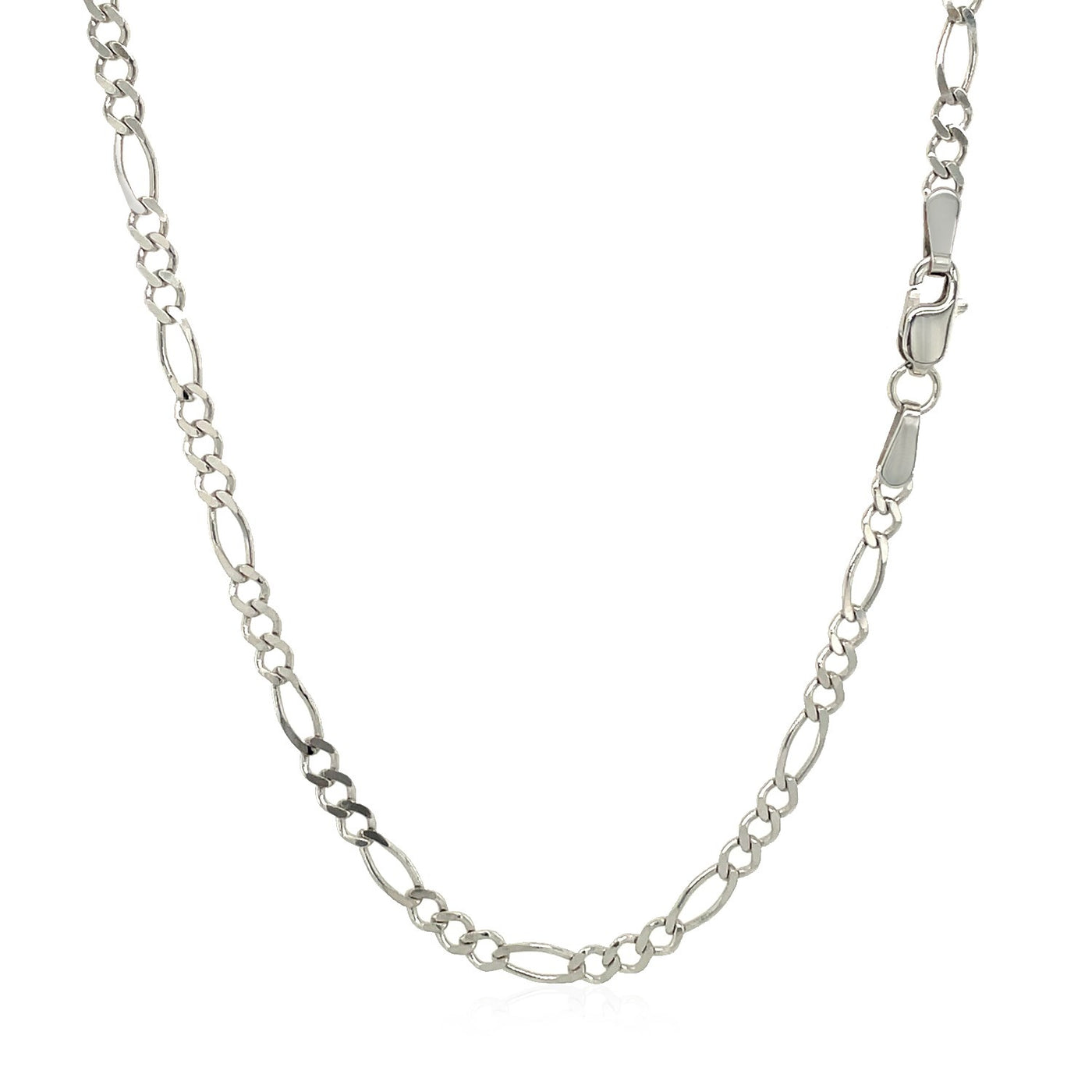 This solid Figaro chain comes in 14k white gold and has a width of 2.60 millimeters.