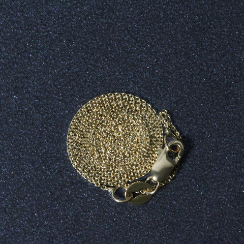 This cable link chain comes in 14k yellow gold and has a width of 0.50 millimeters.