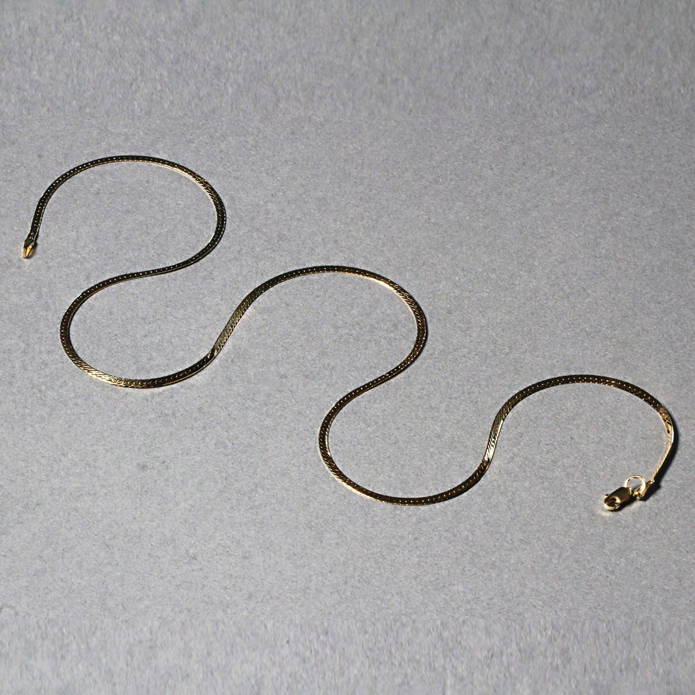 This super flex herringbone chain comes in 14k yellow gold and has a width of 1.5 millimeters.