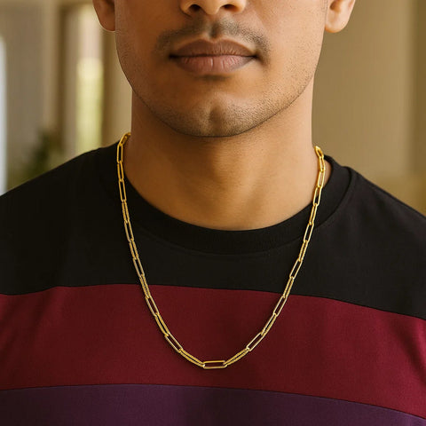 Bright 14k yellow gold is the star of this exquisite contemporary textured paperclip chain. Chain has 3.5 mm wide links and closes with a lobster clasp.