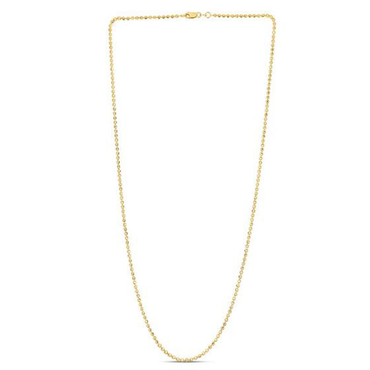 Moon cut bead chain crafted in 14k yellow gold measuring 2.0 millimeters in width.