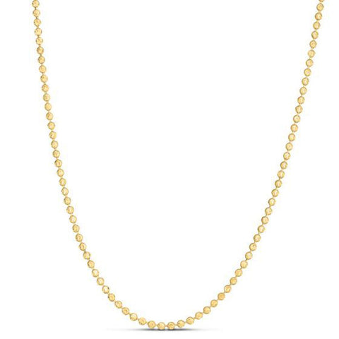 Moon cut bead chain crafted in 14k yellow gold measuring 2.5 millimeters in width.