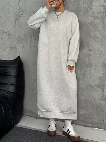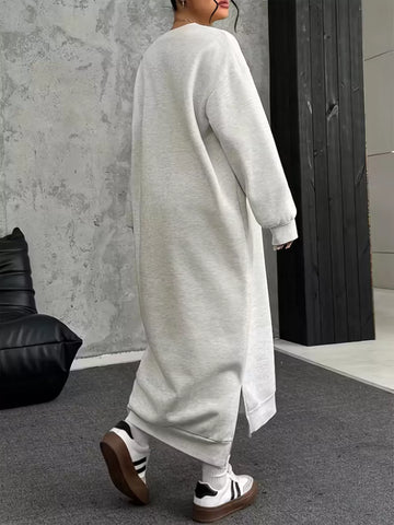 Plus Size Casual Slit Long Sleeve Sweatshirt Dress - Gray / 0XL