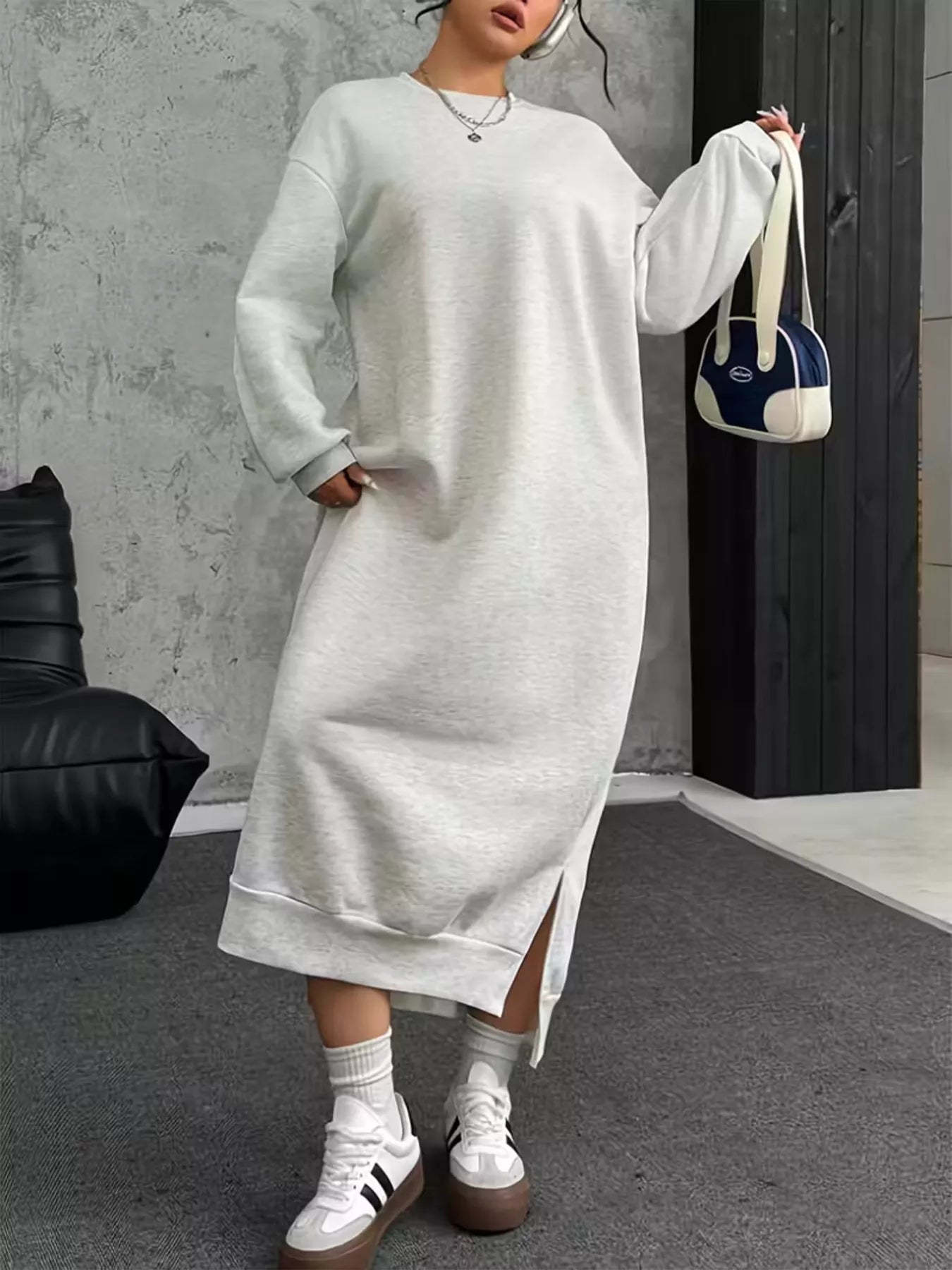 Plus Size Casual Slit Long Sleeve Sweatshirt Dress En solde